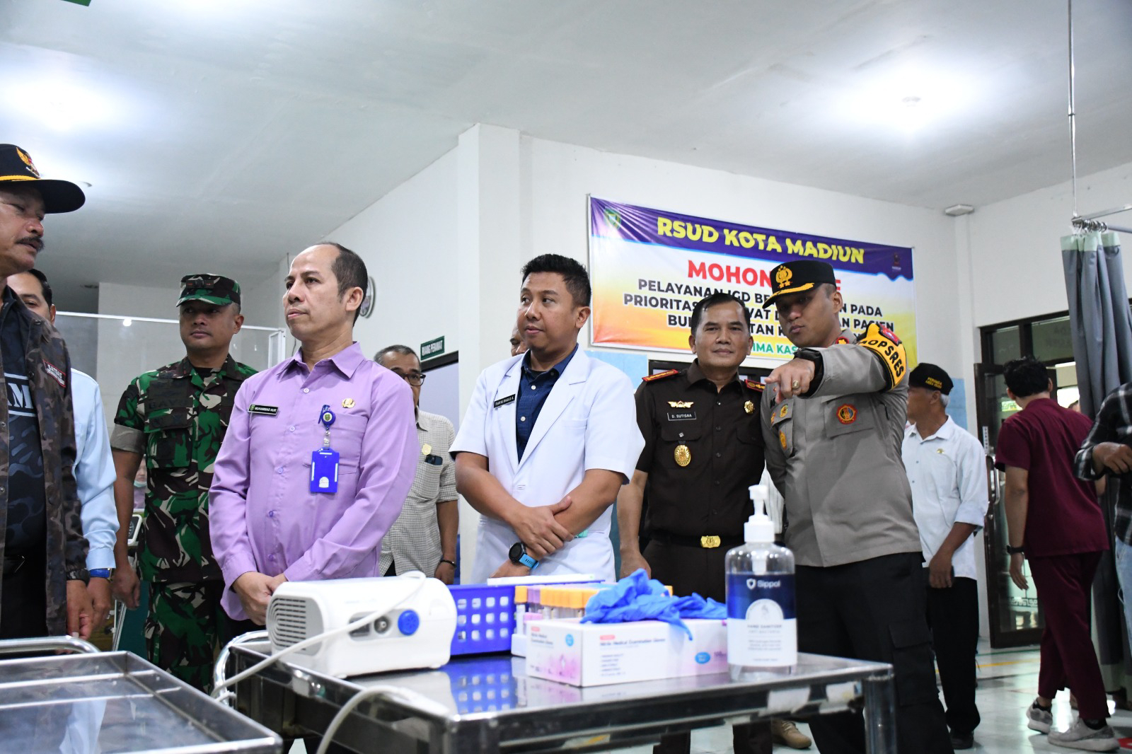 Kegiatan ini bertujuan untuk memastikan bahwa fasilitas kesehatan siap menghadapi lonjakan pemudik yang membutuhkan layanan medis, baik akibat kecelakaan lalu lintas maupun kondisi darurat lainnya. Kapolres Madiun Kota AKBP Agus Dwi Suryanto SIK.,MH., bersama jajaran Forkopimda, melakukan inspeksi langsung ke ruang IGD, fasilitas rawat inap, serta kesiapan tenaga medis dan ambulans.